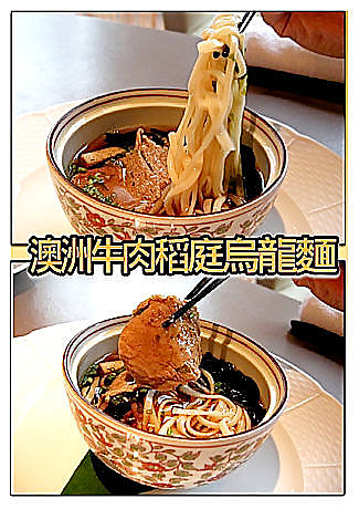 兩片澳洲和牛稍加鹽烤,搭上稻庭烏龍麵