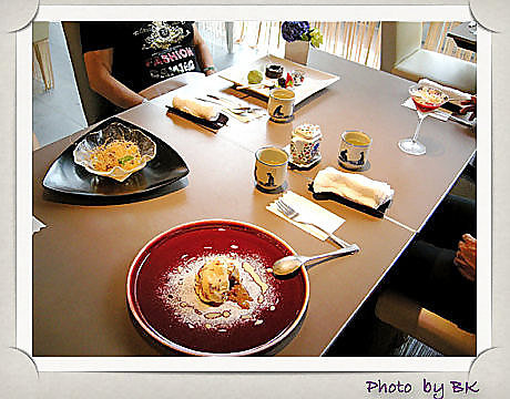 下圖是明蝦+湯葉(豆腐皮)佐日式淡淡醬汁