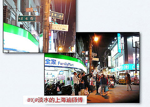 上海滷師傅是位在淡水捷運站出口對面那條淡水最熱鬧的英專路直走,會看到屈臣氏與全家便利商店的分叉路(清水街),面向全家往左轉,路口就可看到大紅燈籠高高掛的上海滷師傅的攤子了,很好找的!