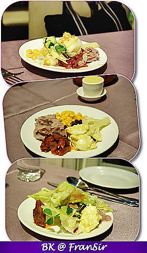 法藍舍繼續保留之前盛鑫招牌的沙拉吧,只要點用套餐就能盡興取用。沙拉吧位在餐廳正中央,菜色不多、取用餐盤也小了些,但卻新鮮好吃。