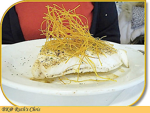 5公分肥厚的大圓鱈表面熱煎,進烤箱封住鮮魚的甘甜,讓魚肉吃來入口即化;牛排館的海鮮料理能夠如此烹調,實在很不錯!