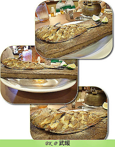 是滴,這是冷盤菜的那尾迦納魚另一側,置放在長方形大石板上頭,簡單鹽烤風味就可提出魚肉本身鮮甜。